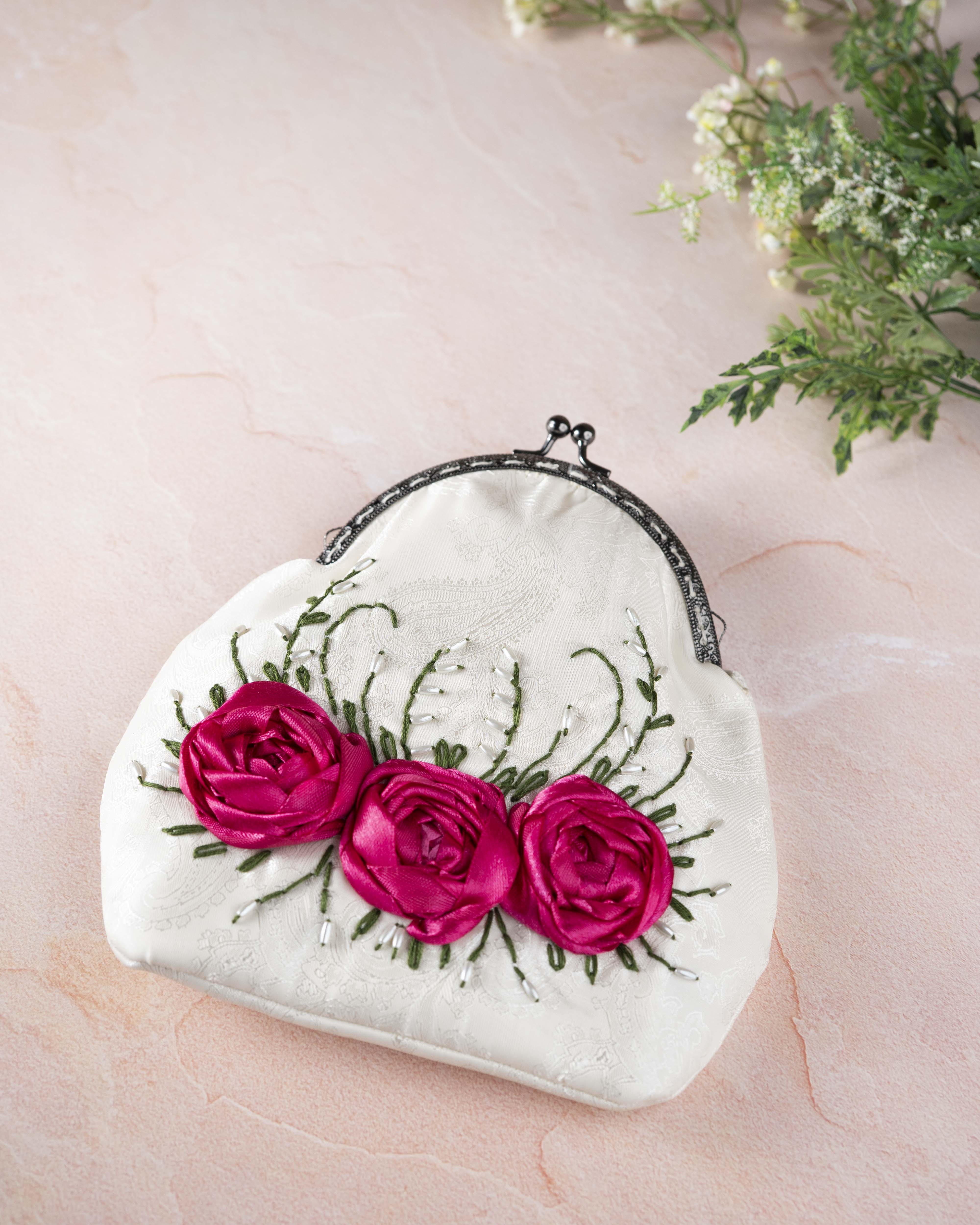 This elegant and beautiful clasp clutch is made out of superior satin material. It has a chain for easy carrying acroos the body .