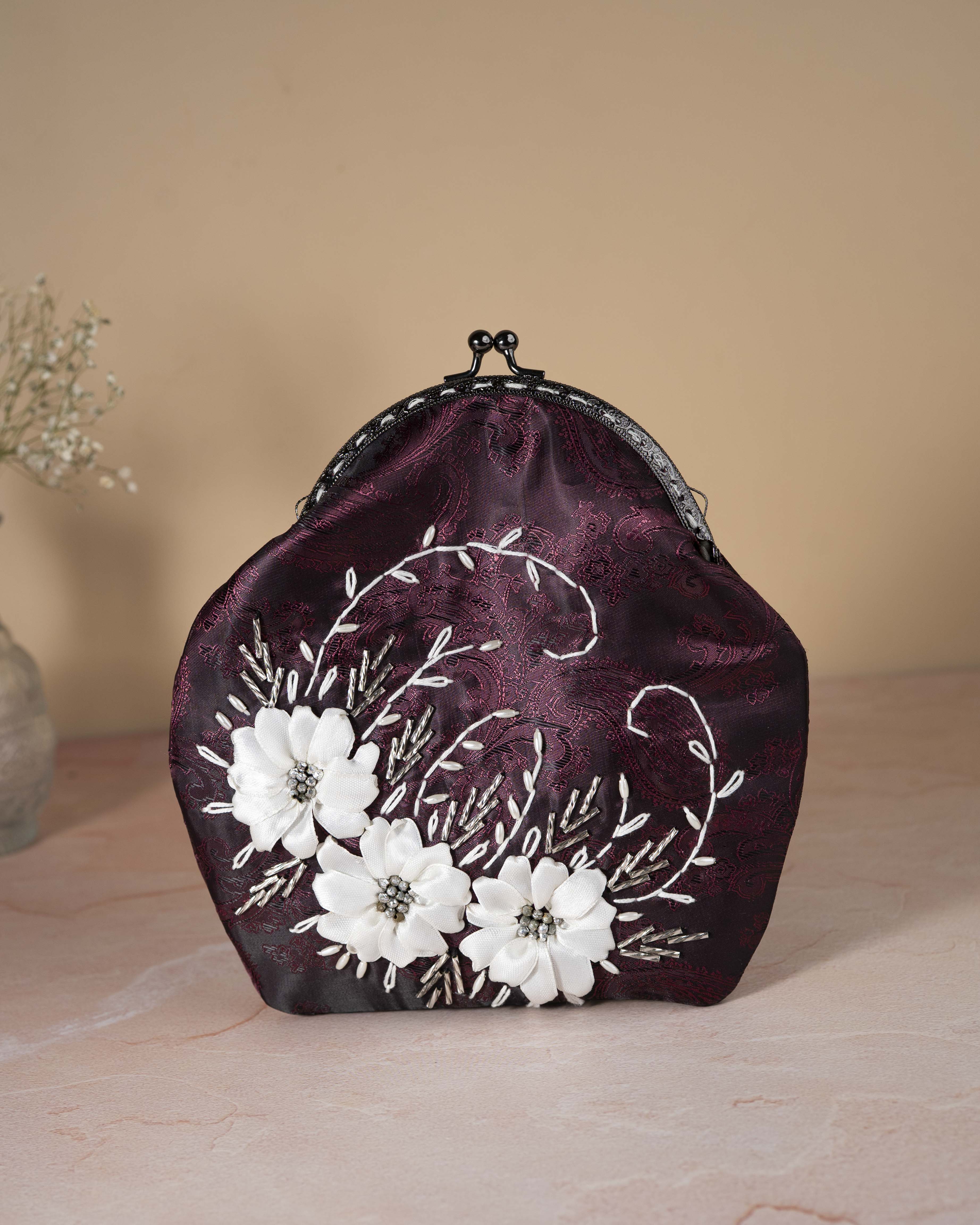 This elegant and beautiful clasp clutch is made out of superior satin material. It has a chain for easy carrying acroos the body .