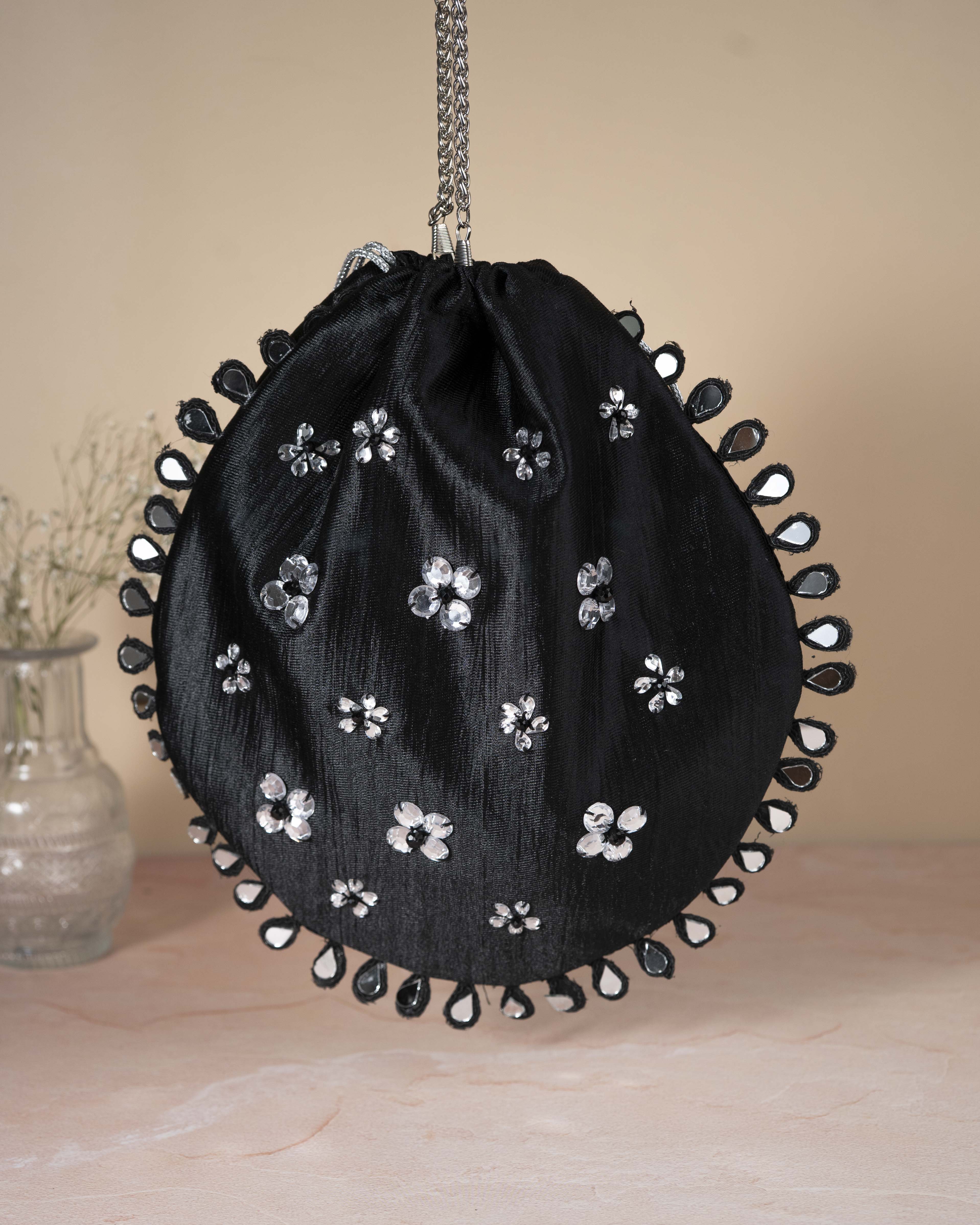 Black Circular Hand Embroidered Potli