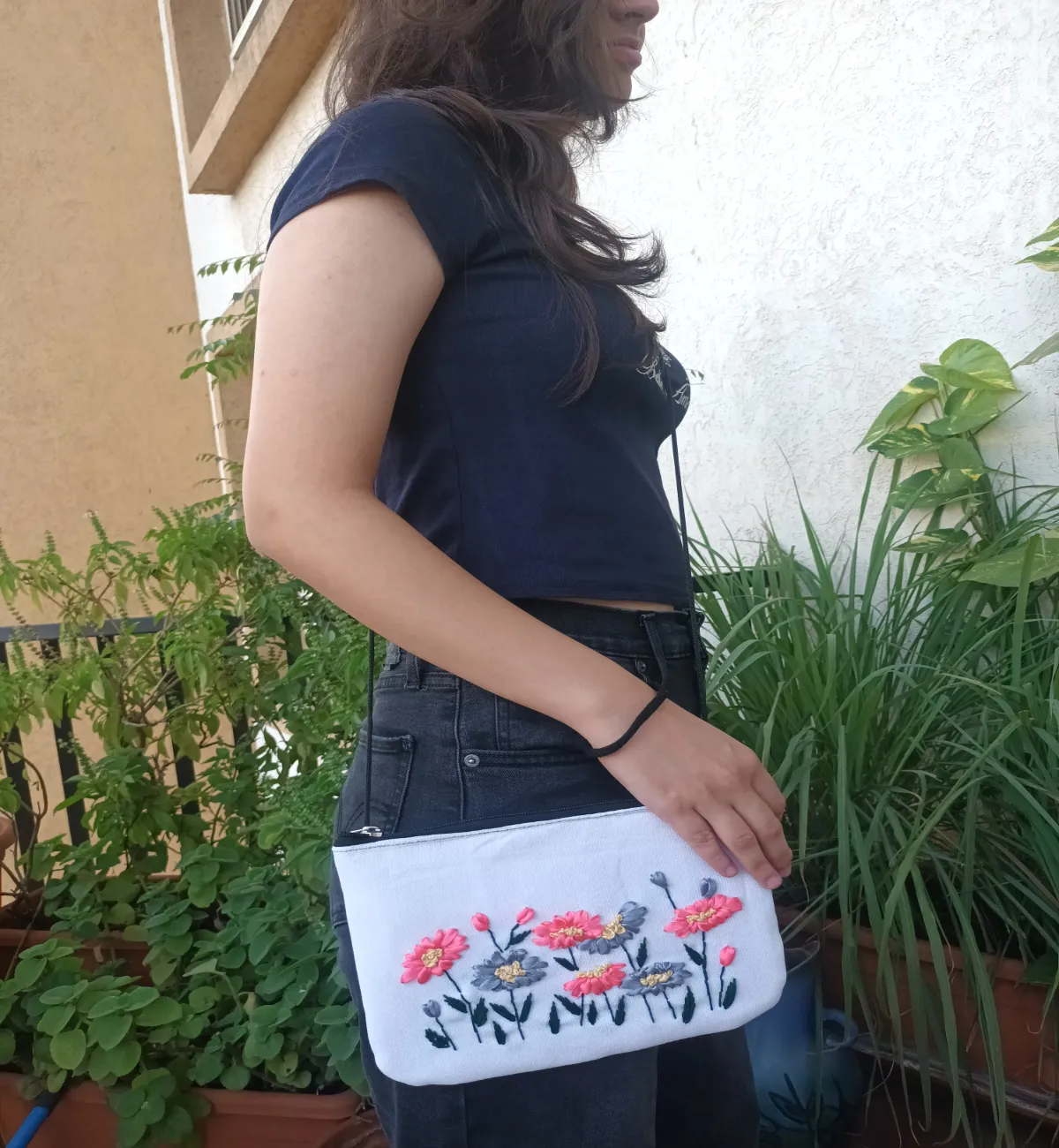 Elegant White Hand Embroidered Sling