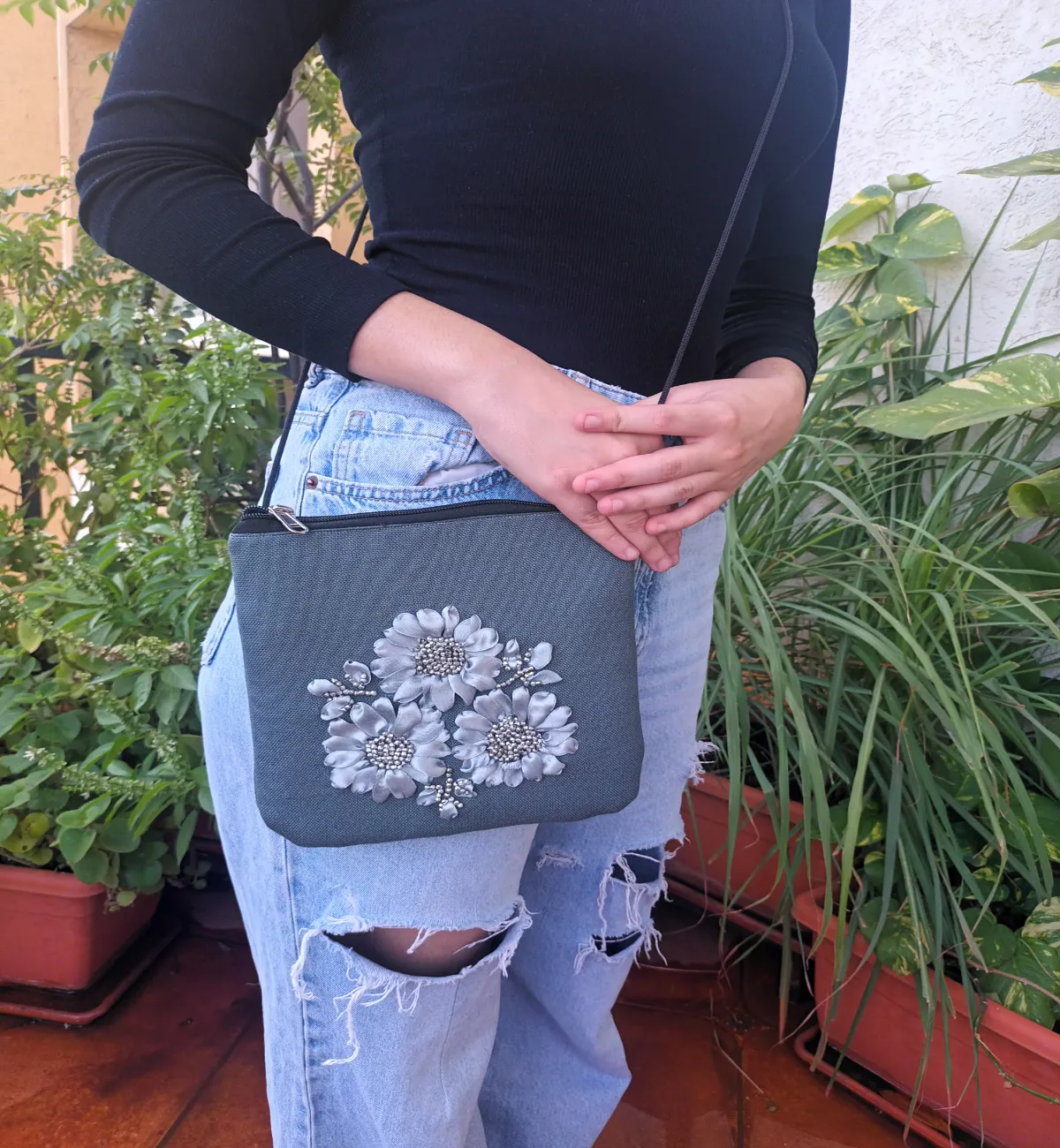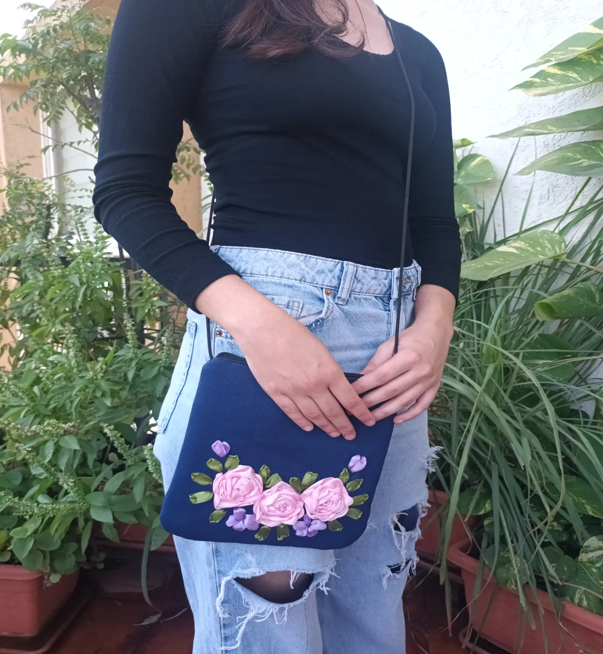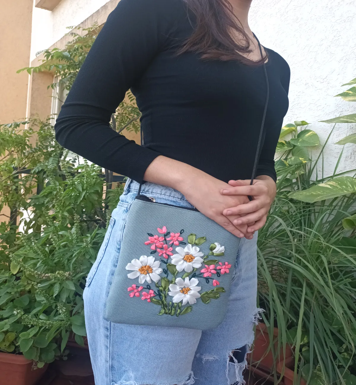 Ribbon embroidered mini sling